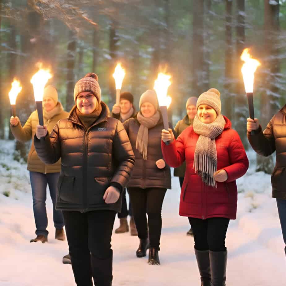 Gemeinsame Fackel-Wanderung durch den Ville-Wald, anschließend Weihnachtsessen im Restaurant Wasserturm.